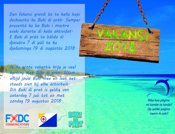 Bálido: 7 di yüli - 19 ougùstùs 2018 | Geldig: 7 juli - 19 augustus 2018